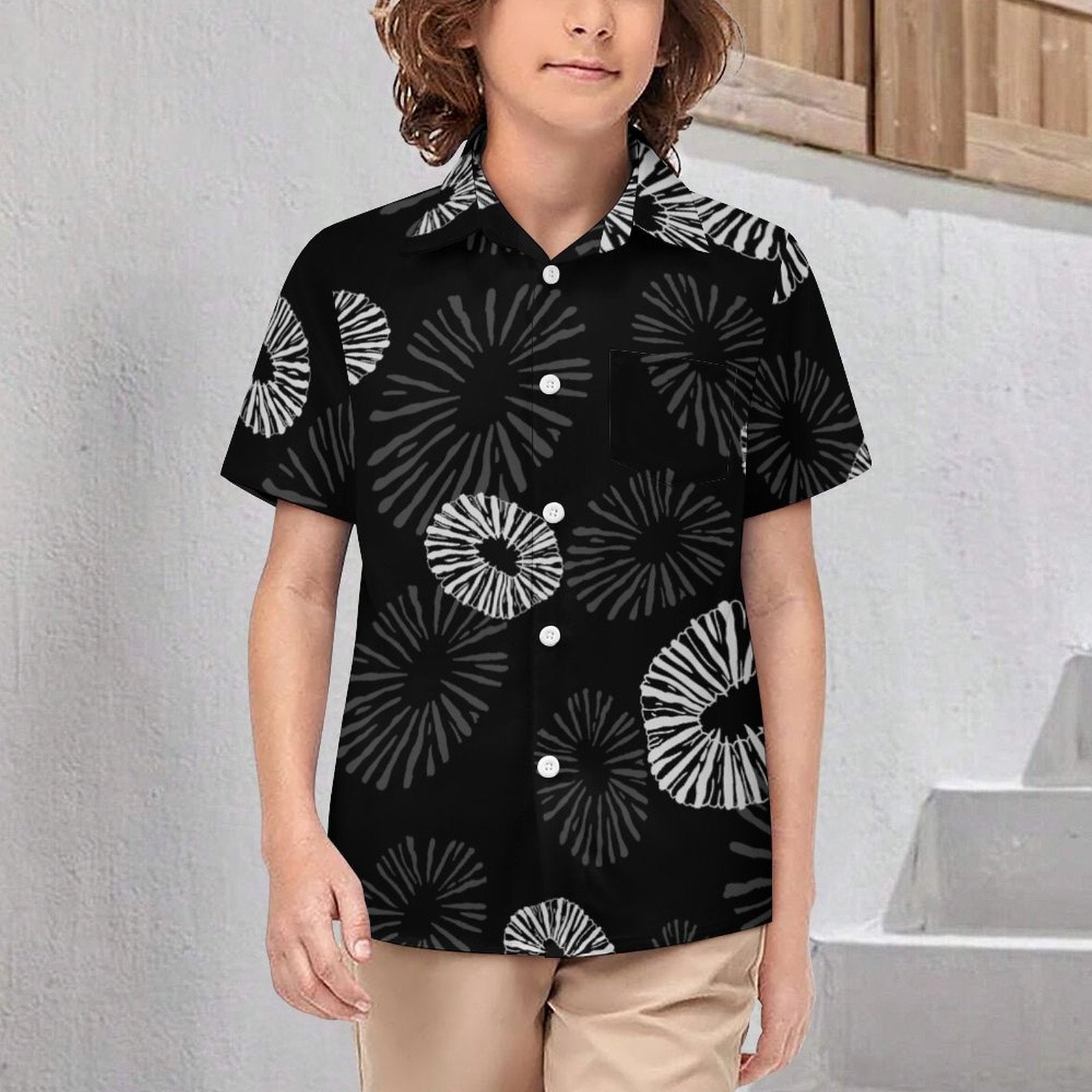 'Opihi Hawaiian Print - Keiki Aloha Shirt, Black and Gray
