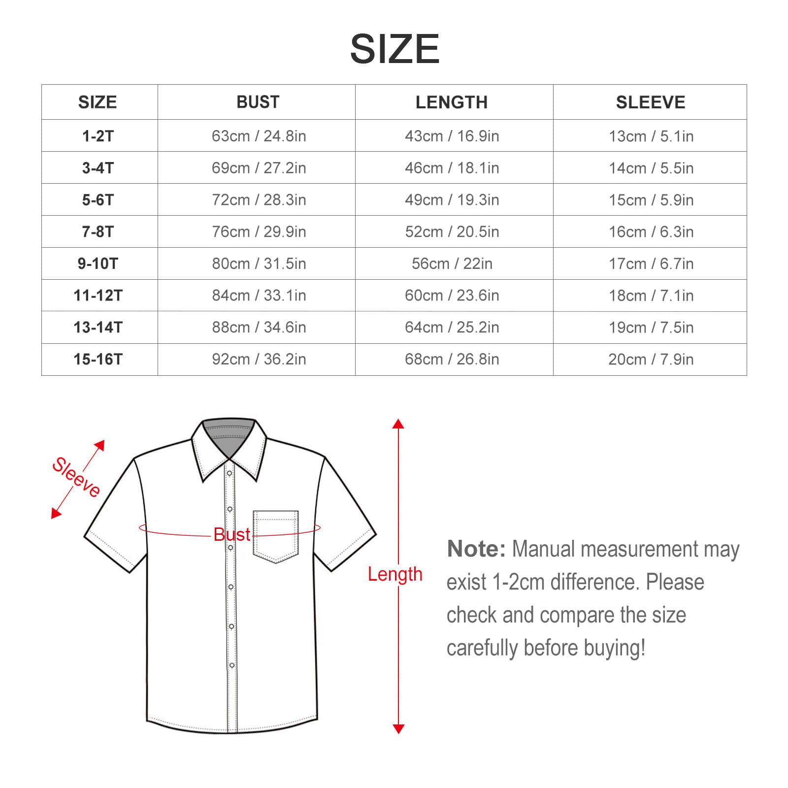 Please note - the size listing has different names for sizing. Please look at the sizing chart and measurements when placing your order. For example - 16T would equal to a children's size XL according to a standard U.S. Apparel Size Chart. Please check measurements appropriately as we do not offer returns or exchanges due to incorrect sizes ordered.