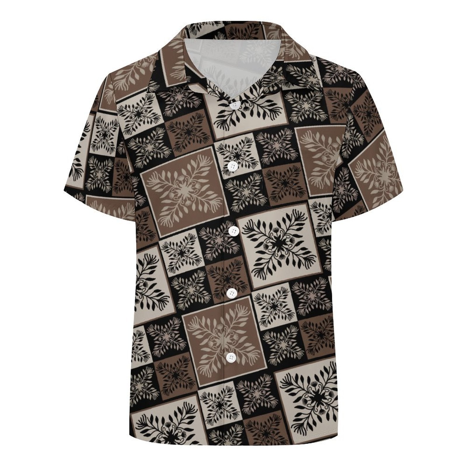 Kapa Kuiki Hawaiian Print - Keiki Aloha Shirt, Brown and Beige