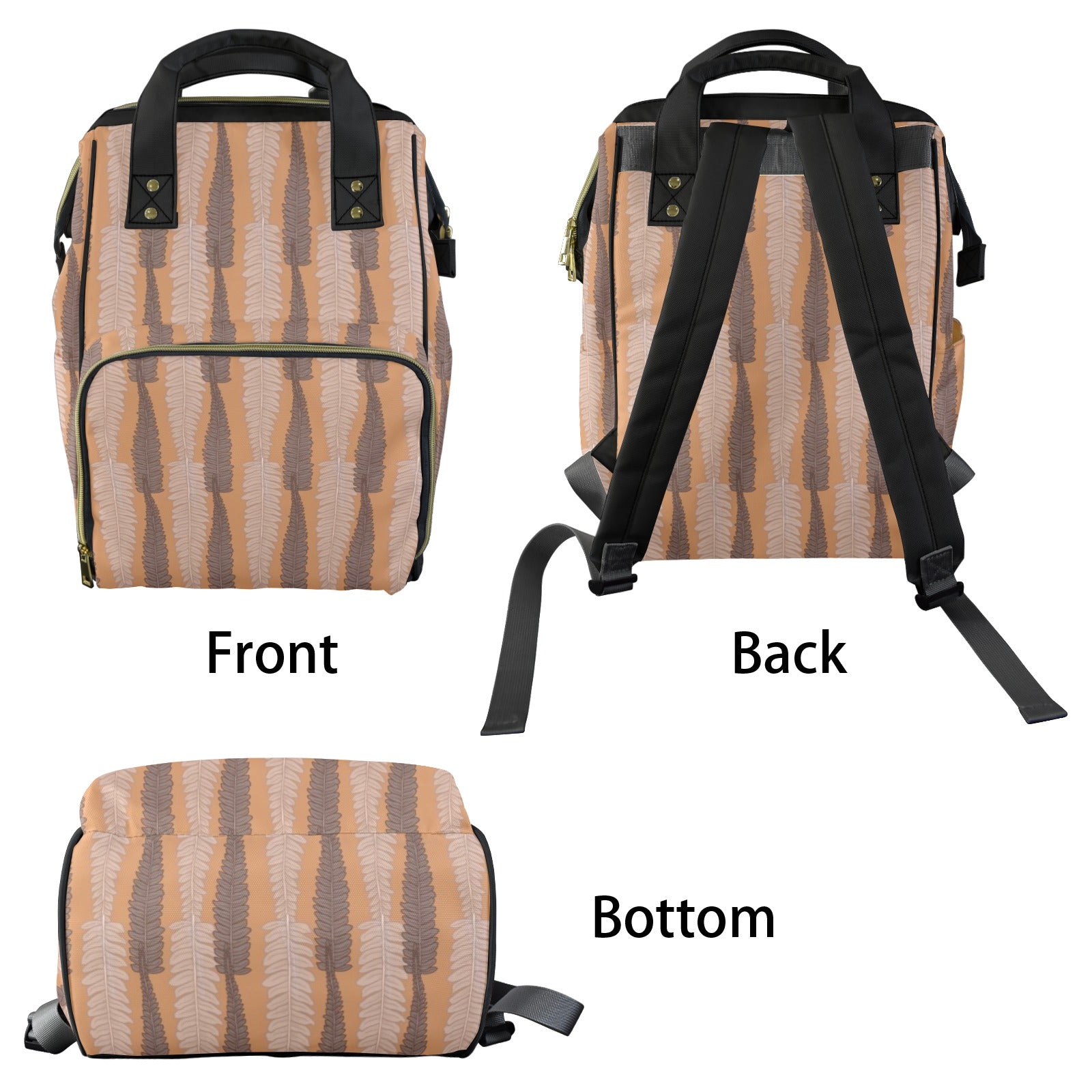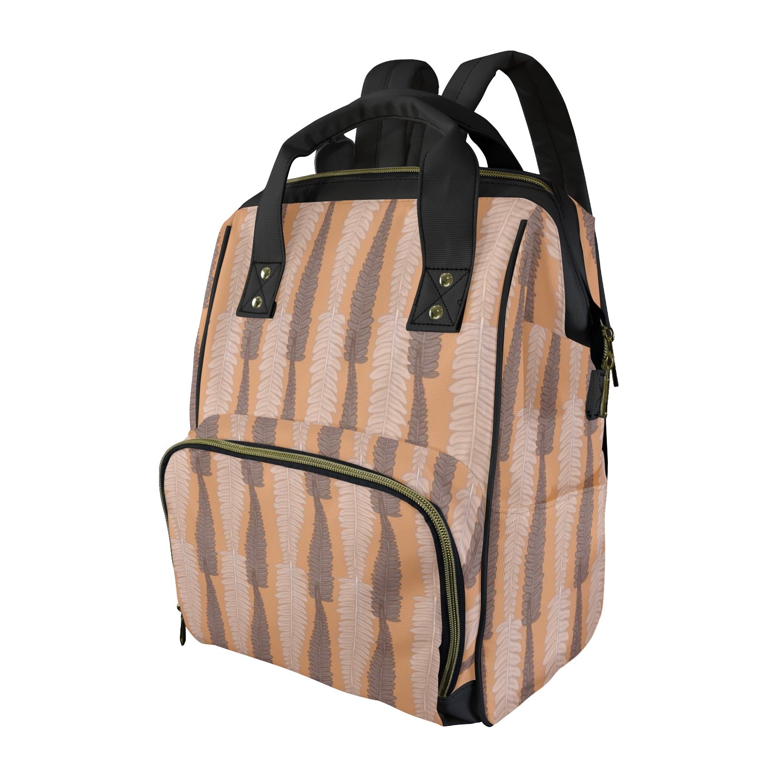 Hapu'u Fern Hawaiian Print Multi-Function Backpack - Orange and Brown