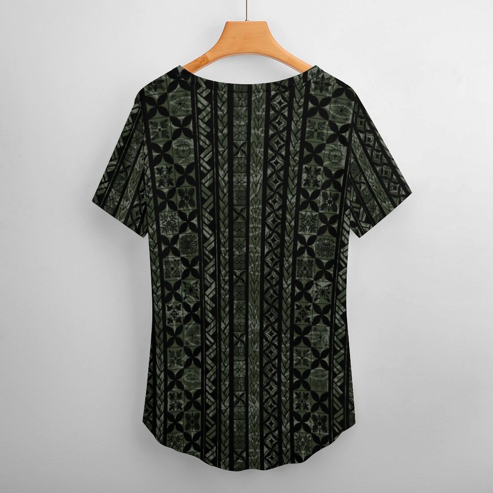 Kapa Kakau Hawaiian Print, Keahi V-Neck Short-Sleeve Shirt - Green and Black