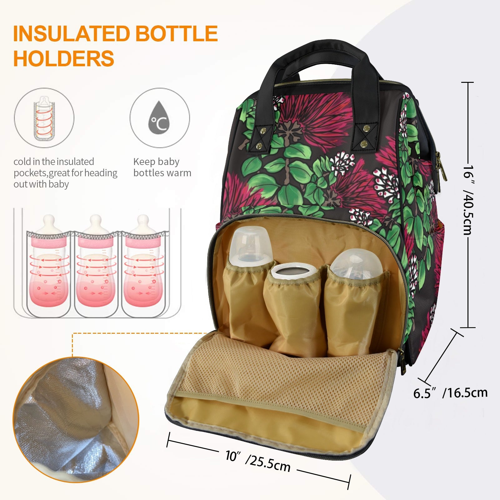 Ohi'a Lehua Hawaiian Print Multi-Purpose Backpack - Red and Black