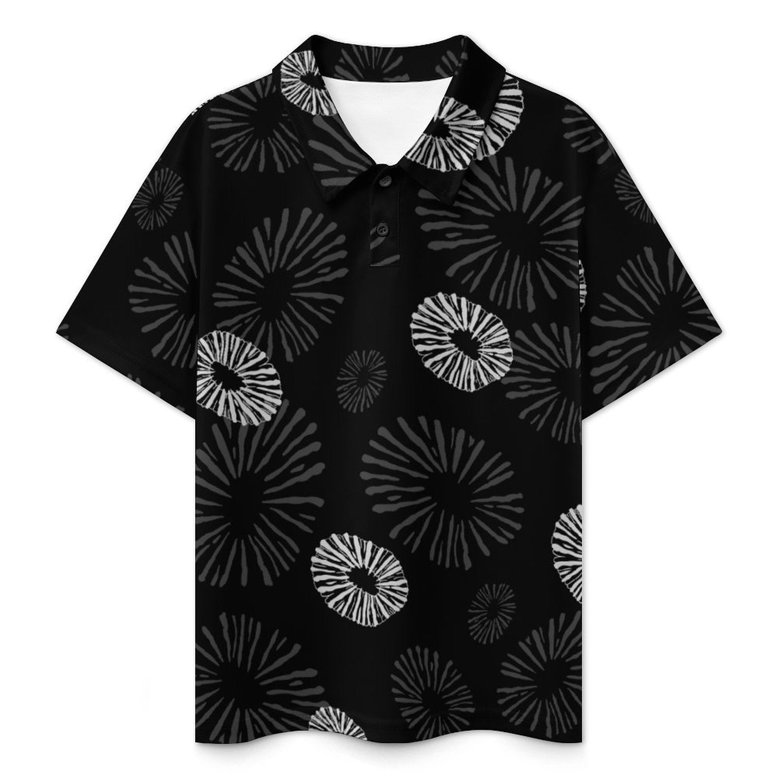 'Opihi Hawaiian Print - Keiki Polo Shirt, Black and Gray