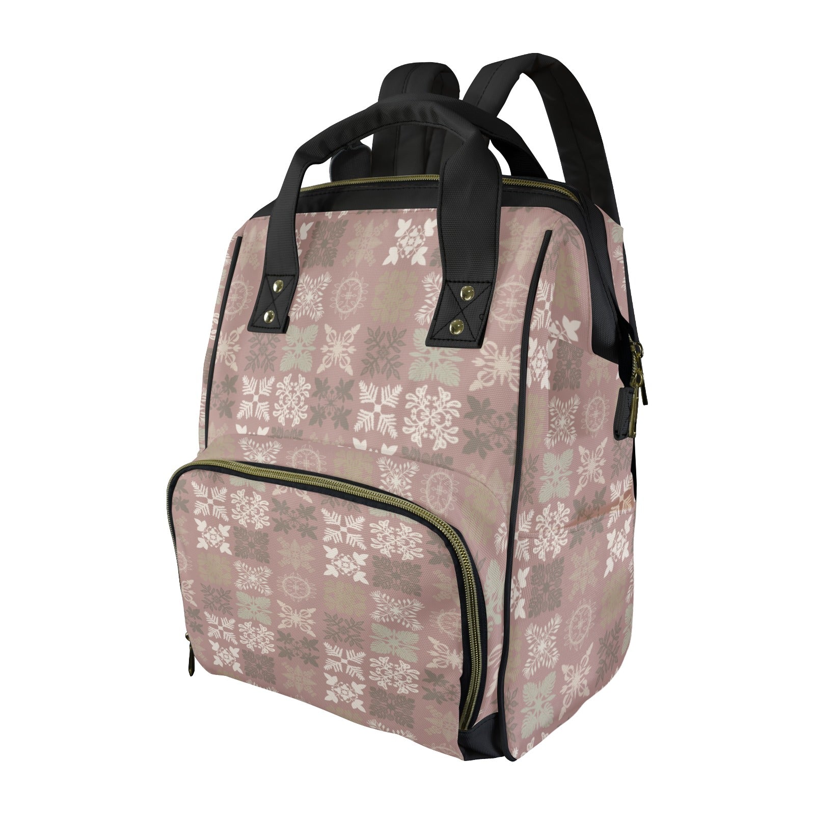 Kapa Kuiki Hawaiian Print Quilt Design Mult-Function Backpack - Mauve and Taupe