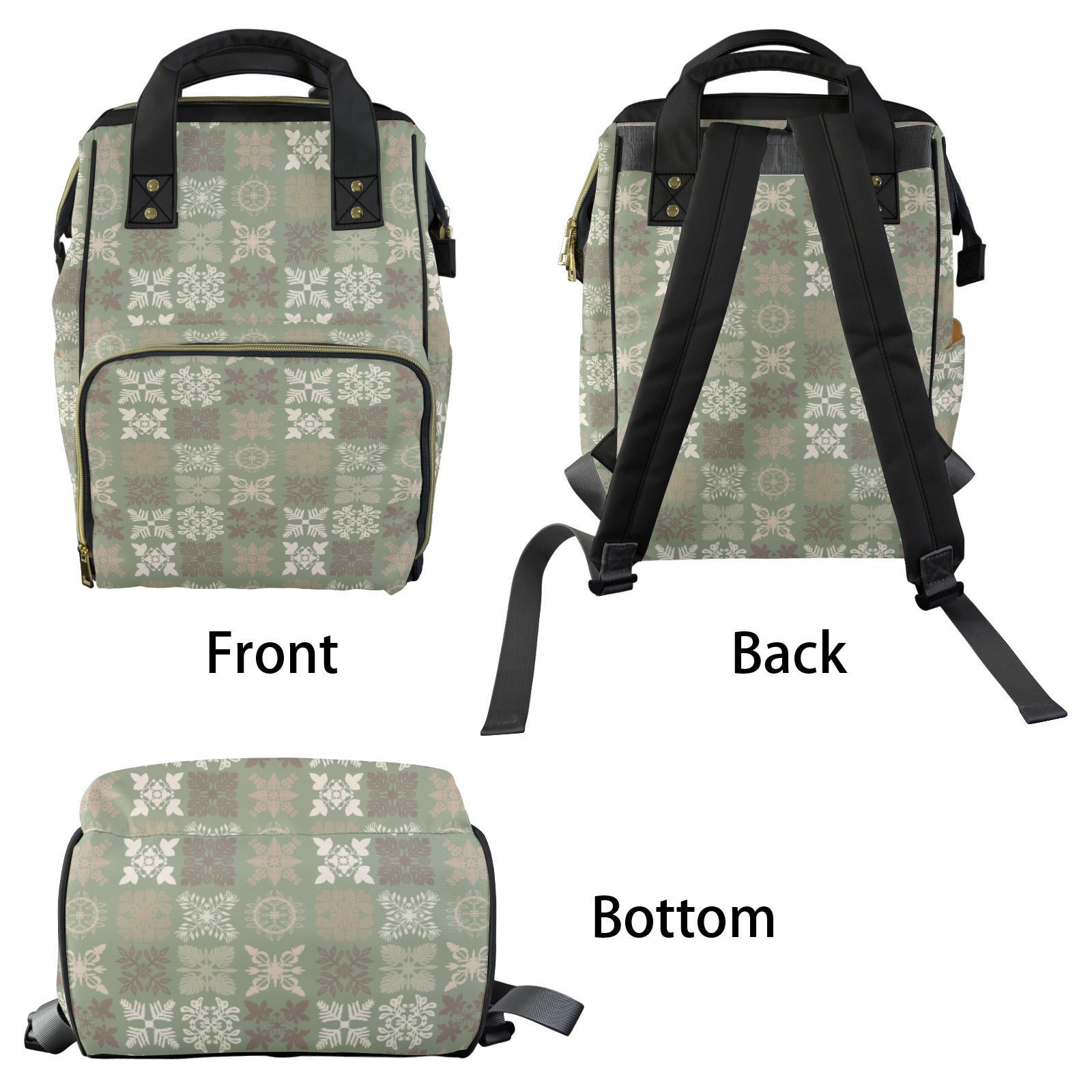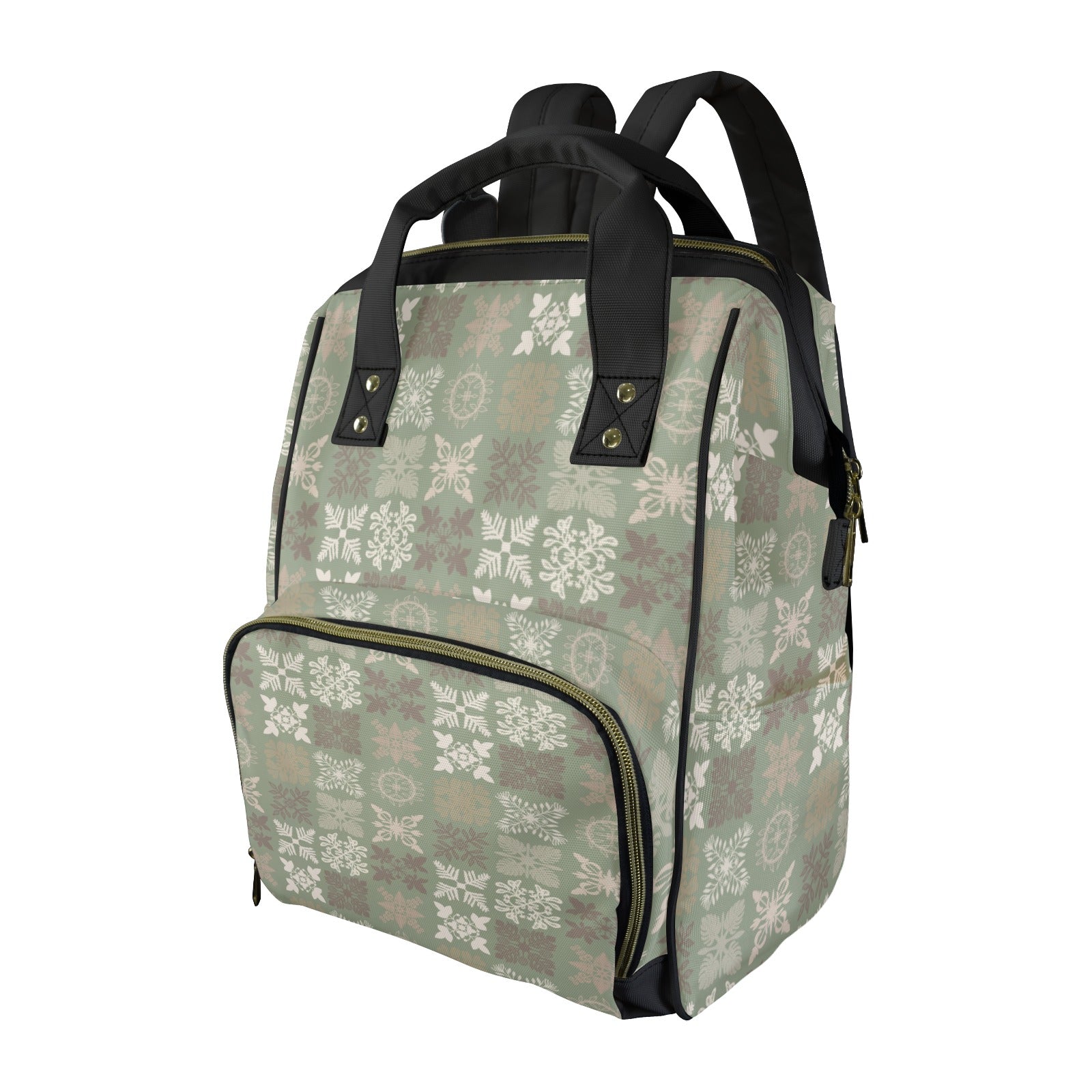 Kapa Kuiki Hawaiian Print Quilt Design Mult-Function Backpack - Sage and Gray