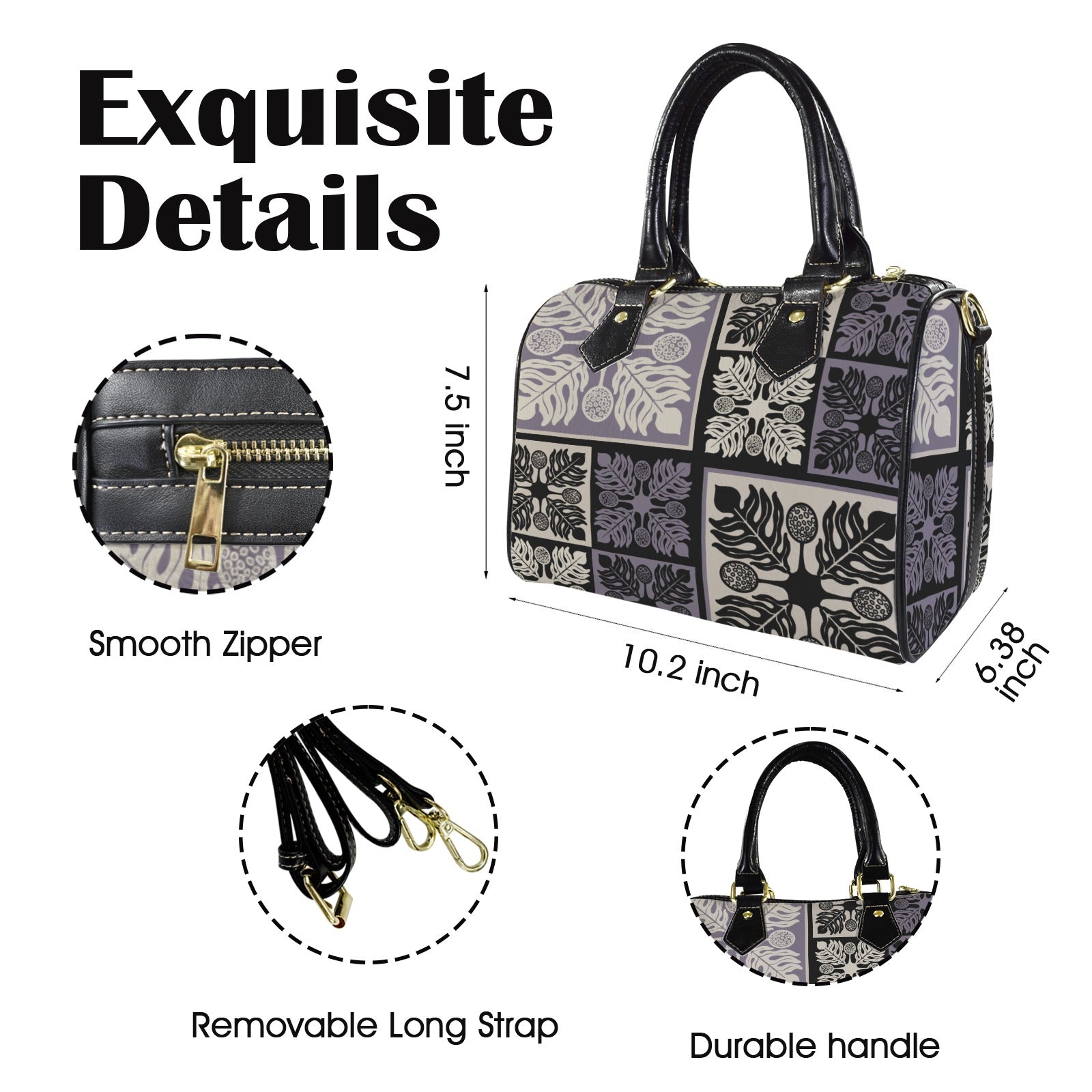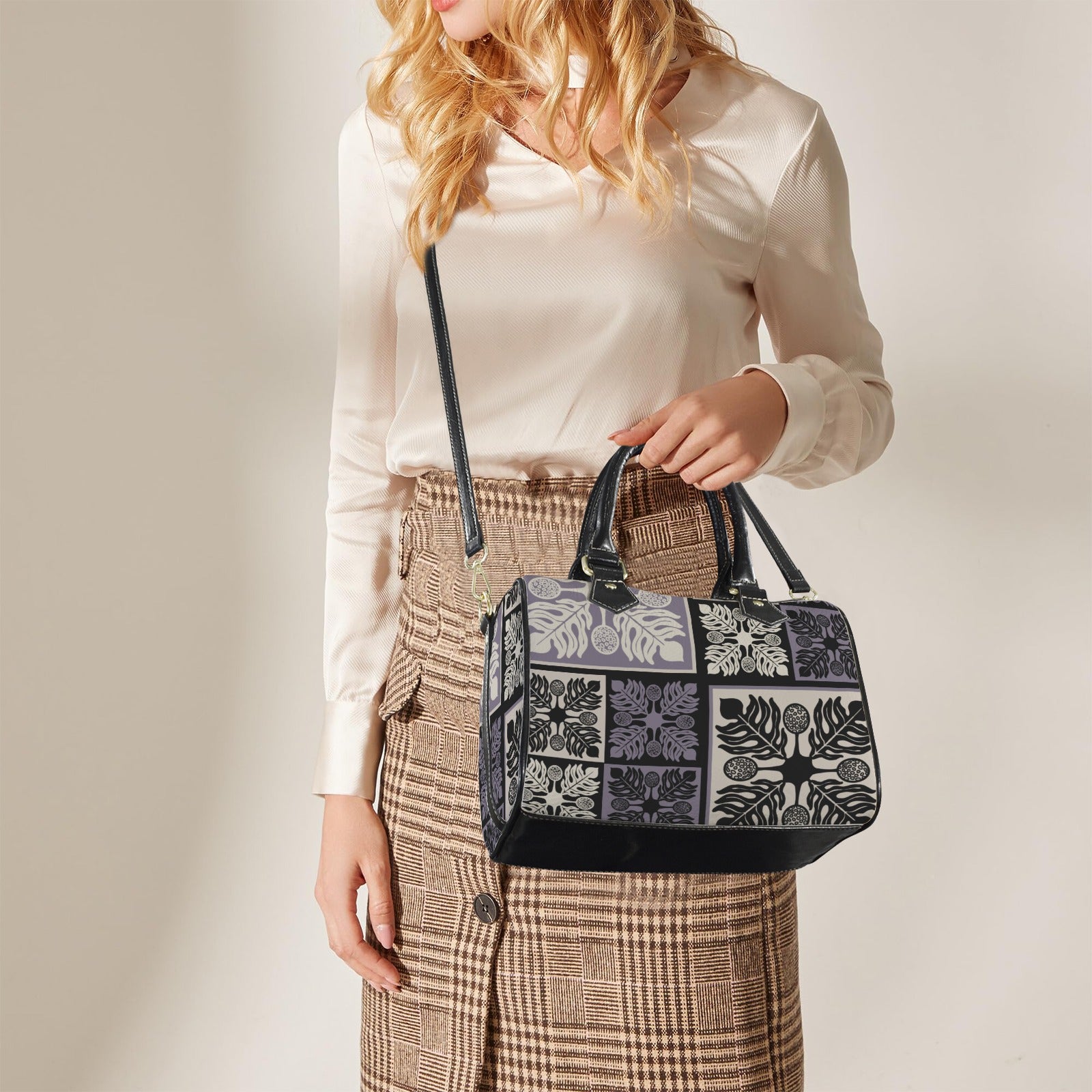 Ulu Breadfruit Kapa Kuiki Hawaiian Quilt Print - Kauka Faux Leather Satchel Handbag, Small