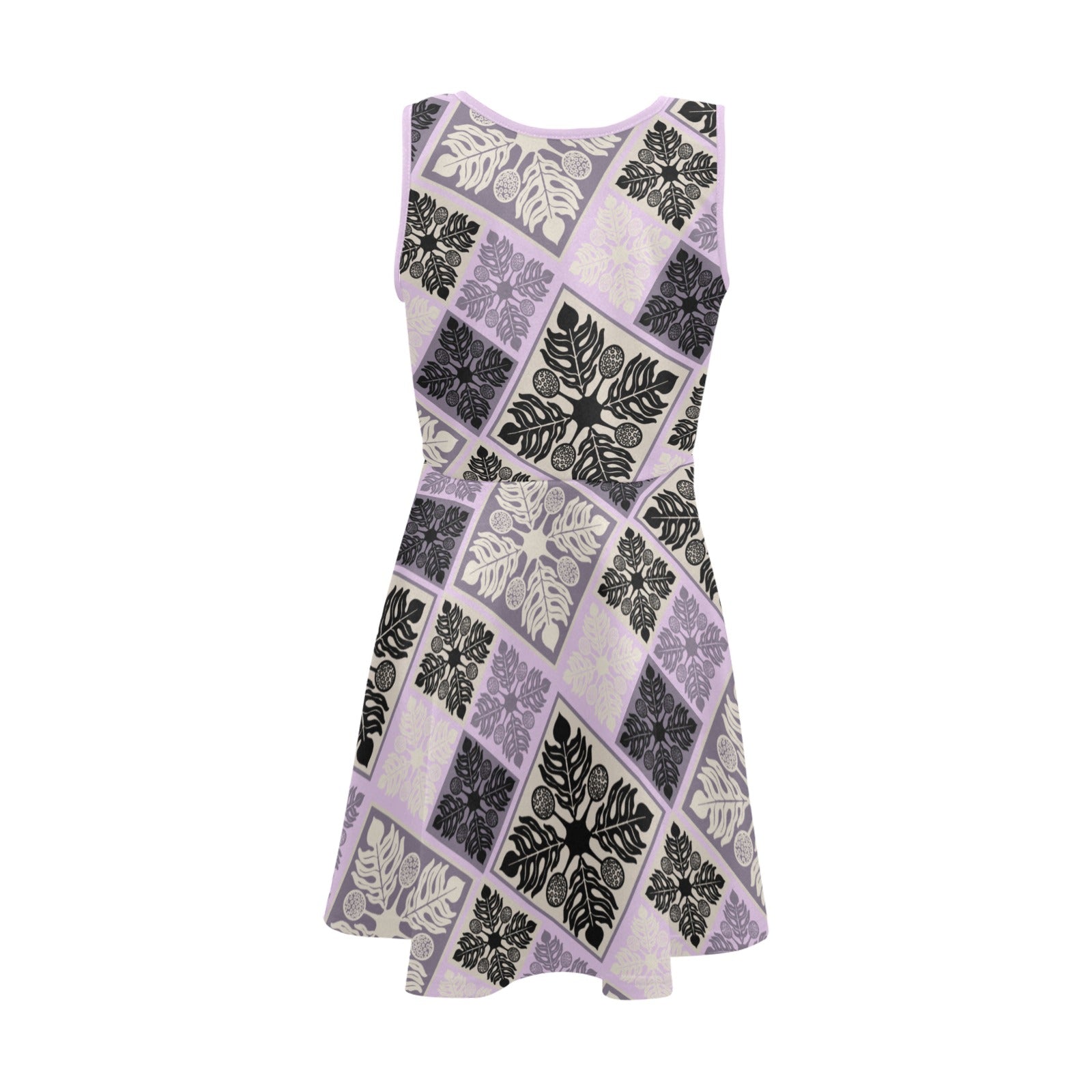 Ulu Breadfruit Kapa Kuiki Block Print - Girl's Sleeveless Dress - Lavender