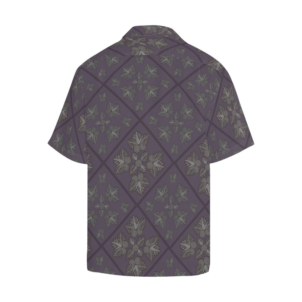 Ulu Quilt Design - Menʻs Aloha Shirt Queenʻs Purple & Gray Hawaiian Shirt